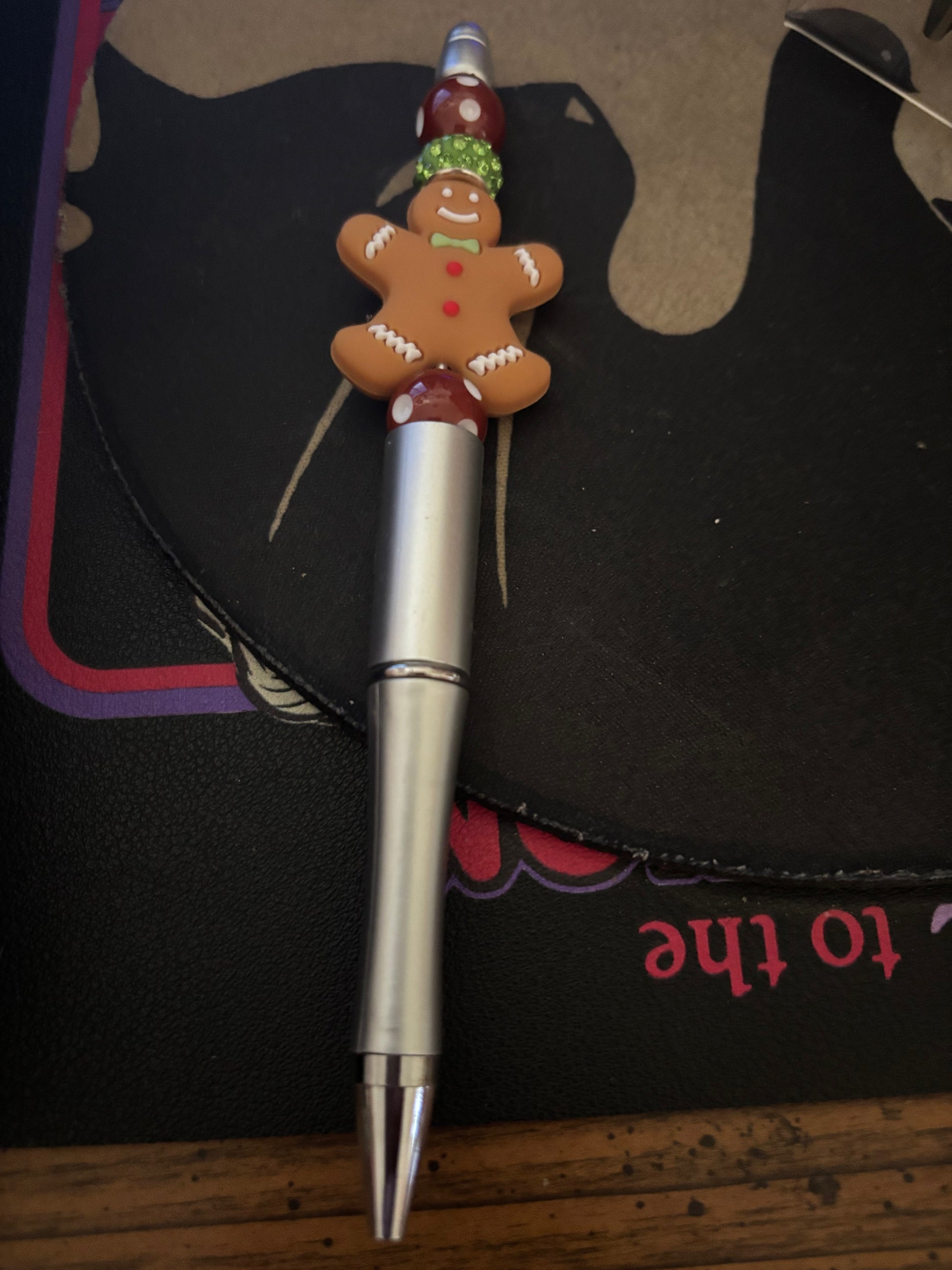 The Gingerbread pen is a charming addition to any stationary collection. With a cute gingerbread boy perched atop the pen, it makes for a perfect stocking stuffer, gift exchange item, or white elephant gift. Spread holiday cheer with this unique and adorable pen.